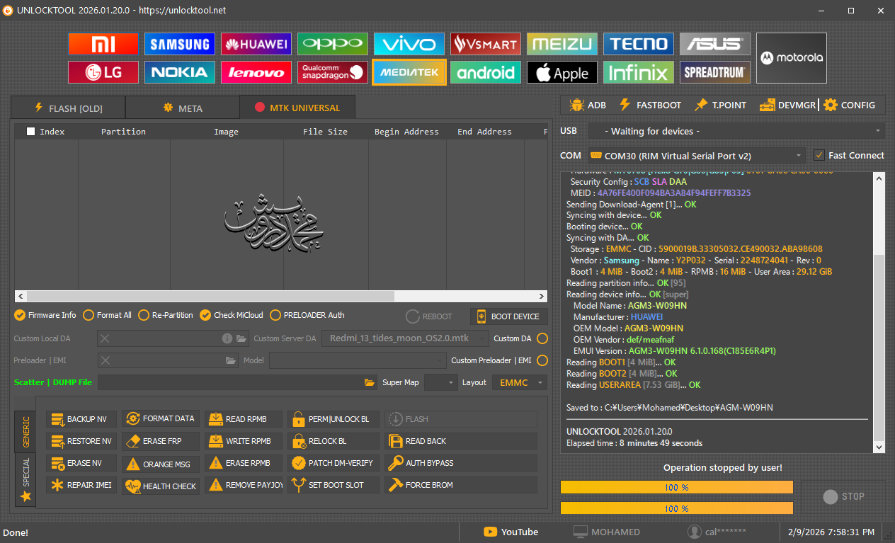 AGM3-W09HN 6.1.0.168(C185E6R4P1) Full Dump Unlock Tool